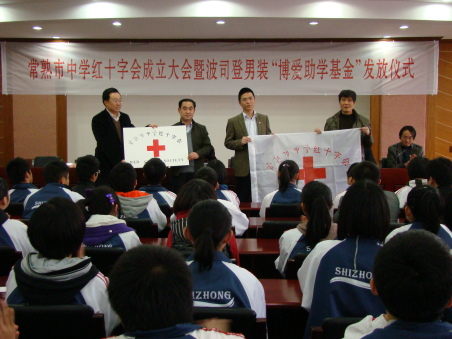 市中负责人表示,校行政将支持校红十字会发展壮大会员队伍,有针对性地开展各类红十字青少年活动。会上,校红十字会通过市红十字会向云南旱灾地区捐款3000元,表达了广大师生对灾区人民的一片爱心。同时,波司登男装还向常熟市中学红十字会捐助了三万元“博爱助学基金”,用于帮助30名贫困学生完成学业。目前,全市学校基层红十字会共有67个,会员15000多名。