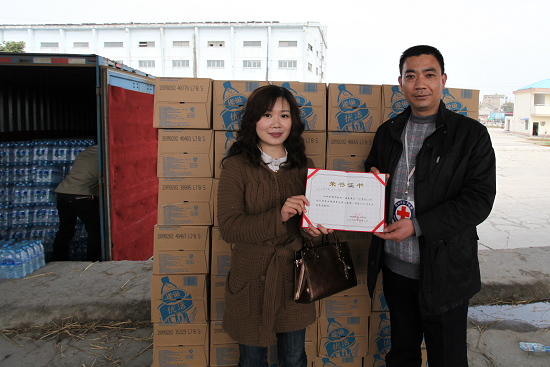 4月2日,我会在火车西站将苏嘉杭高速公路、金阊医院、苏州宝尊贸易进出口有限公司及爱心人士捐出的35吨纯净水,发往贵州安顺灾区。其中有位姓高的先生联合3位爱心人士就捐出了22吨,总价值4万多元的矿泉水,他还亲自到现场协助搬运。看到水即将发出,他激动地说:虽然我不是什么富翁,但我想到灾区的人在干旱中煎熬心里就不安,这是我的一点心意,算不了什么。临走时他还反复关照市红十字会工作人员不要宣传。
