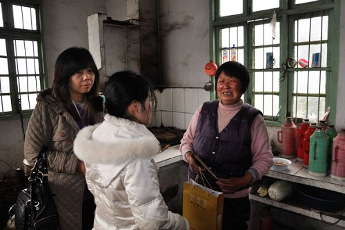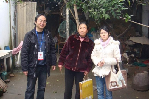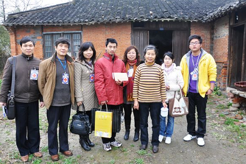 义工远风和大学生在碧溪镇浒西村一重病患者家