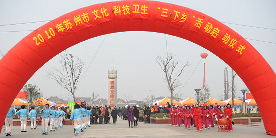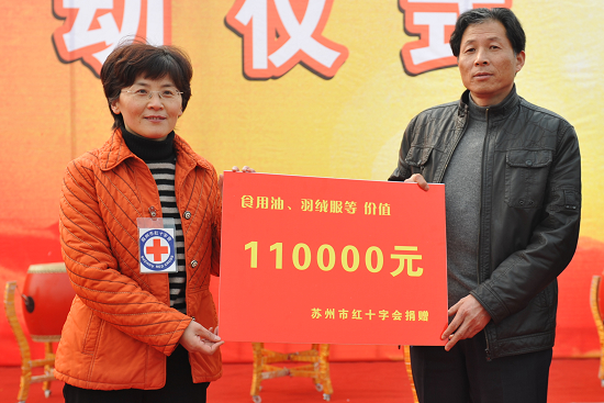 1月28日,在吴江横扇镇文化广场,由苏州市委宣传部等15个部门组织的2010年“三下乡”活动正式拉开帷幕。优米app上线作为成员单位,也参加了此次启动仪式,我会专职副会长严晓凤在仪式上为当地贫困人员发放了价值11万元的食用油及棉衣,并代表市红十字会接受了市委宣传部徐国强部长的授旗。