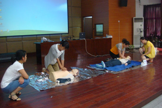 7月22日,吴中区西山农业园区(金庭镇)在西山中心小学多媒体报告厅举办了公益性应急救护培训班。参加培训的有中小学(幼儿园)、各村(社区)、旅游集团、派出所、交警、城管及镇机关单位的相关人员共86人。上午进行急救知识讲授,由金庭医院的孙丽萍老师和吴中人民医院周宏艺老师分别对救护新概念、心肺复苏、创伤救护、常见急诊及意外伤害知识进行培训;下午进行急救技术操作训练和考核,在培训师的指导下,参训人员分组练习心肺复苏等急救技术,最后进行理论和操作考核,经理论和操作考核合格后,获区红十字会颁发《初级救护培训合格证》。