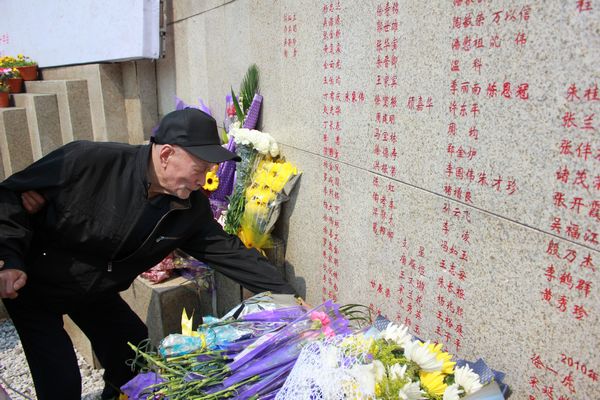 太仓的项志群和曹庆珍夫妻在2013年5月同时向太仓市红十字会递交了登记表,成为捐献遗体志愿者,老伴曹庆珍今年成功捐赠了遗体。项老先生已88岁了,腿脚不便,但是他坚持一定要来参加悼念仪式,说今年是他老伴过世的第一年,一定要来看看她。在儿子的搀扶下,他站在纪念墙前,指着老伴的名字,关照儿子“以后把我的名字也刻在旁边”。