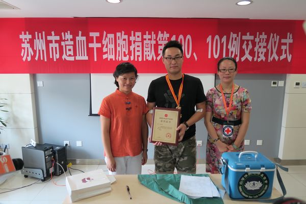 2015年7月28日,这是个值得纪念的日子,在今日完成捐献的朱玺、吴惠丰,成为苏州市第100、101位造血干细胞捐献者。他们的造血干细胞即将送往上海,输入到两个幼小的身体里,给两个小宝宝带去第二次生命。