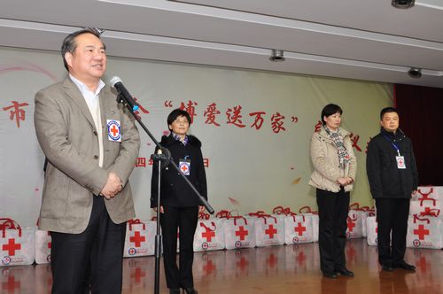 1月8日,在高新区狮山街道金色社区内,随着市政府副市长、市红十字会会长王鸿声宣布2014年苏州市红十字“博爱送万家”正式启动,拉开了全市红十字会春节送温暖活动的帷幕。