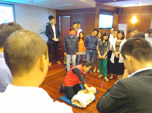 在总工会的培训中,市红十字会讲师薛花结合总工会工作特点,联系企业实际讲解了救护新概念、防灾避险、心肺复苏、创伤救护等救护知识和自救互救技能培训。市商务局培训中,市红十字会李式键讲师从行医数十年的经历出发,列举了儿童误食窒息、车祸现场救援、亲身救母的经验体会,引导大家学习心肺复苏,传授气道梗塞“李氏”解救法。鲜活的事故案例和深入浅出的医学理论讲解深深吸引了大家。市商务局工会黄主席表示:“感谢红会老师给大家传授了心肺复苏等救命技能,现在心脏疾病发生的越来越多,不怕一万,就怕万一,掌握这一技能才能有备无患!”