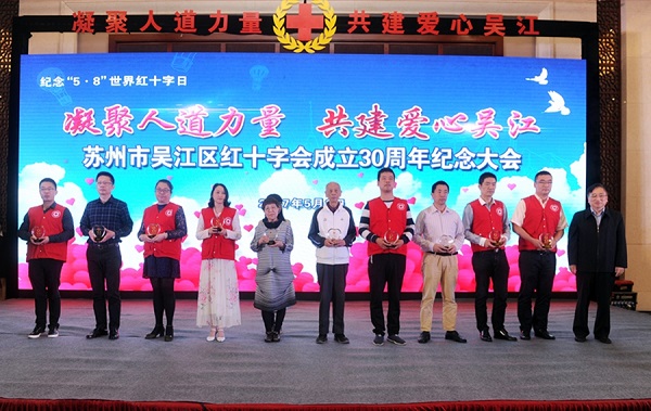 5月8日是第70个世界红十字日,吴江区召开苏州市吴江区红十字会成立30周年纪念大会。区委书记沈国芳,苏州市红十字会党组书记、常务副会长严晓凤,区领导王燕红、吴卫中、汤卫明、王玉英等出席纪念大会。