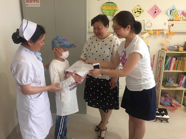天域幼儿园在9个班级300多名孩子中开展募捐活动,他们这一传统已经进行了数年。今年在老师和家委会的协商下,开展了义卖活动,将小朋友平时不太用的文具、礼品、玩具等拿出来出售,所得款项全部捐助给了白血病儿童闫某某。