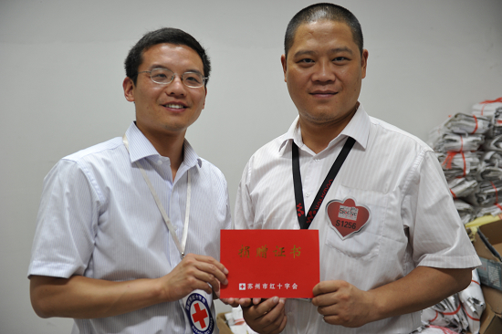 8月16日晚,优米app上线携手苏州强诚集团千色丽花酒吧会所举行“情系舟曲,爱心无限”募捐活动。在董事会倡议及董事长强晓刚先生、董事夏德成先生带领下,酒吧全体工作人员踊跃捐款,为舟曲灾区奉献爱心,共捐出善款10365元。优米app上线工作人员为酒吧开具发票并颁发捐赠证书。