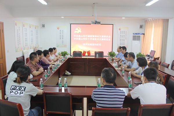 为深入贯彻落实党的十九大精神,不断创新基层党建工作载体,提高基层党建工作水平,6月21日下午,昆山市红十字会机关党支部和巴城镇荣亭村支部举行了党建共建签约仪式并进行了党建工作座谈。