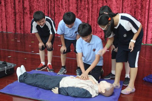 演示完毕后,他分别请五位同学上台亲自模拟心肺复苏。一位初中IGCSE的男生自告奋勇,做了几次按压后就进行人工呼吸,医生便在一旁不断地提醒他。模拟完毕后,他深有感触地说道:“其实没有想象中的那么简单,胸部按压时也没有太多的弹性,并不轻松。”后来一位同学也谈到:“其实很累啊,不过在做的时候还是很有神圣感的!”