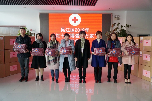 1月17日上午,2019年吴江区红十字“博爱送万家”启动仪式在吴江区公共卫生中心举行,吴江区红十字会常务副会长沈小红 、各镇(区)红十字会秘书长等参加。