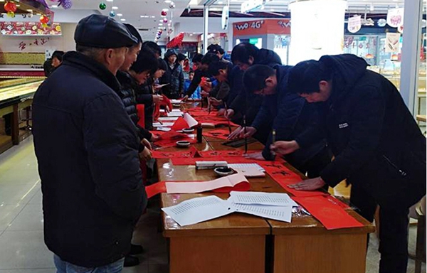 2月1日,在常熟市支塘镇常客隆超市广场,支塘镇红十字会等多部门联合组织开展了“写春联猜灯谜”活动。