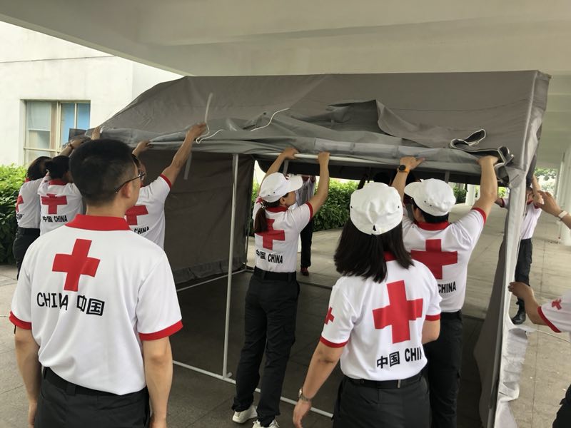 5月26日,虽然外面下着大雨,但红十字应急救援队的队员们热情高涨。他们一大早就来到优米app上线,进行为期一天的封闭式训练。