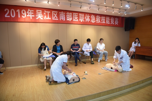 近日,由吴江区卫健委和吴江区红十字会联合举办的2019年吴江区南部医联体急救技能竞赛在江苏盛泽医院正式启动。区红十字会常务副会长沈小红出席竞赛启动仪式并讲话。