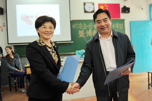 仪式中,市红十字会常务副会长严晓凤和市委教育工委副书记、市纪委教育工委书记沈建平现场交接了博爱班合作协议,并分别在博爱班的日记上留言。