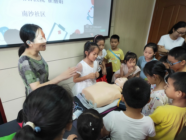 活动期间,社区邀请了张家港市红十字救护培训师资志愿者瞿丽娟为青少年们带来一堂救护培训课。瞿丽娟通过PPT的形式为大家介绍了心肺复苏及常见的急救知识,在场的小学员们边看边学,兴致盎然,时不时争抢着回答老师的提问,气氛十分热烈。