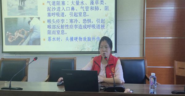 培训邀请了吴江区红十字会救护培训师志愿者袁明艳老师授课,袁老师根据日常生活实际,通过PPT讲解、举例子、现场互动等形式,详细介绍了电击伤、溺水、烧烫伤、中暑、食物中毒、毒蛇咬伤中毒等夏季常见意外伤害的应急处理。学员们认真听讲,踊跃参与互动,学习热情高涨。