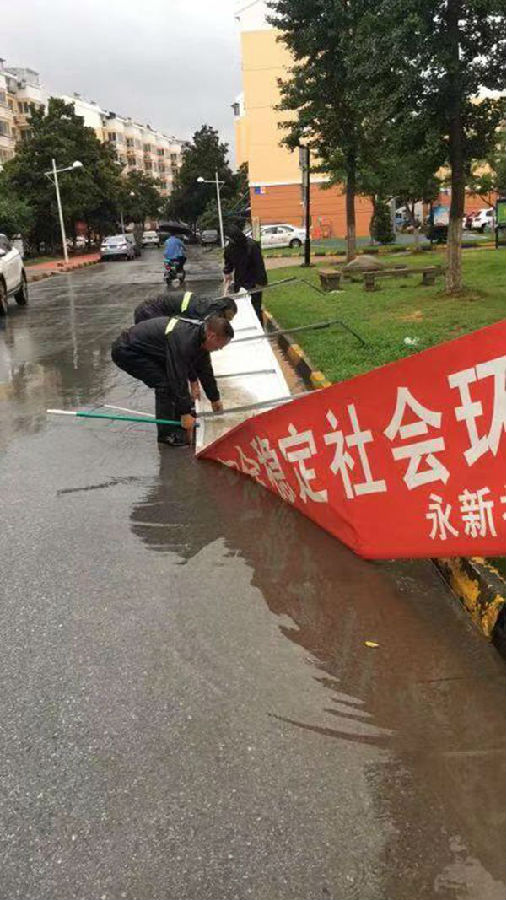 8月9日晚至11日凌晨,台风“利奇马”给苏城带来了大风暴雨,但风雨却挡不住队员们的步伐。他们迎着风、淋着雨,发现围挡大面积倾倒、树木折断,阻碍市民通行时,应急救援队员们合力将围档、树木搬移至安全区域;广告布幔脱落,随风飘扬时,队员们迅速登高清除;当看到出行市民被困积水路段时,队员们踏着积水,帮助市民推行车辆,迅速转移.....。在清理台风所带来影响的同时,救援队还担负着重点区域隐患排查工作。