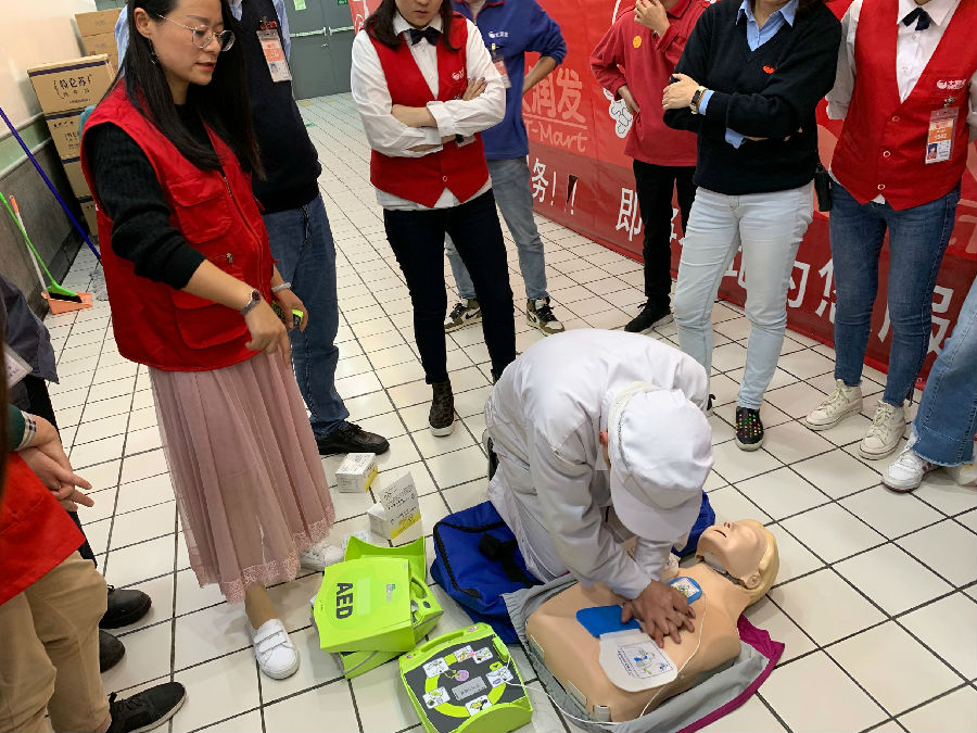 培训中,红十字救护培训师针对AED的设备性能、使用方法、管理维护等方面对设置点的管理人员进行了理论和实践操作培训,并强调了AED管理的重要性,对今后的管理工作提出了具体要求。