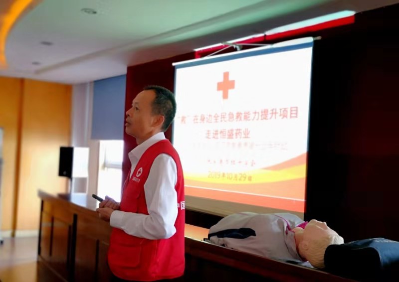 10月29日,首场公益性救护培训在江苏恒盛药业有限公司拉开帷幕。培训课上,充分考虑到企业学员的性质和实际,红十字救护培训师巧妙结合日常生活实际和新闻案例,编排了有针对性的授课方案。通过理论讲解、示范操作、现场互动等多种形式,使大家了解救护新概念、掌握心肺复苏技能、创伤救护、意外伤害等现场急救原则和方法,提高大家的自救互救能力。