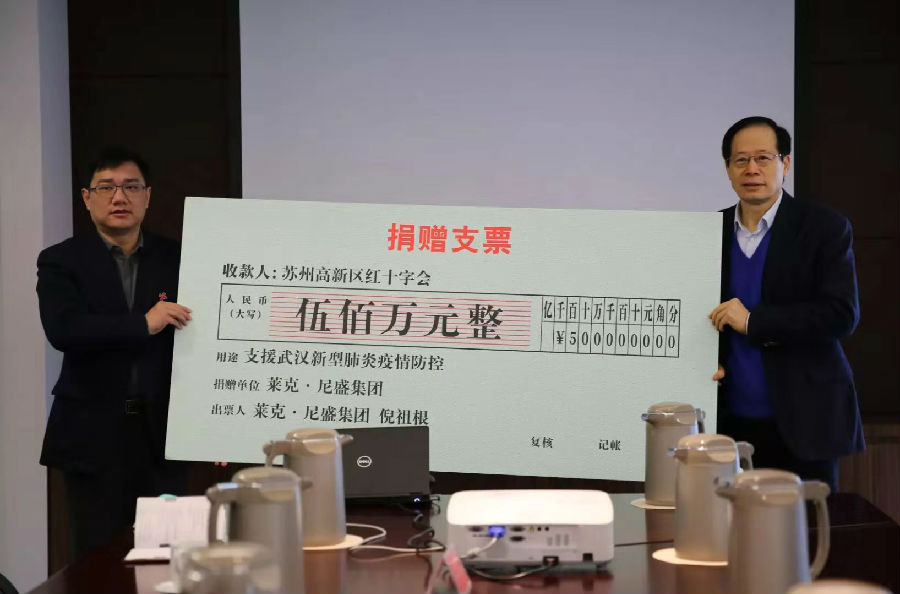 苏州高新区莱克·尼盛集团捐赠500万元支援武汉