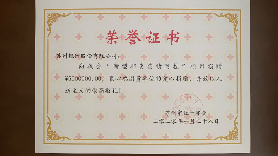 据了解,苏州银行本次500万捐款全部捐献给市红十字会,专项用于本市疫情防控工作,为全力抗击疫情提供金融力量。