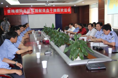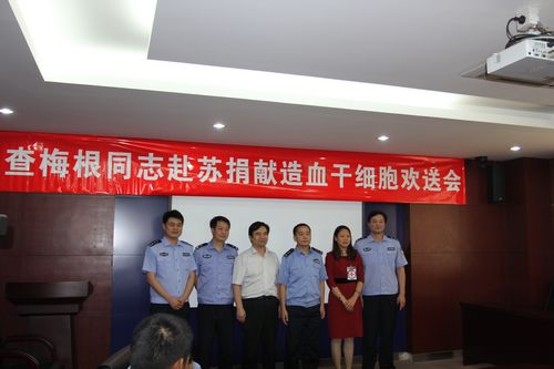 6月13日下午,江苏省昆山市第31位造血干细胞捐献者查梅根赴苏州捐献欢送会在花桥派出所举行。昆山市红十字会、市公安局、花桥经济开发区社会事业局及花桥派出所等单位的领导及查梅根的同事共30多人前来为他送行。