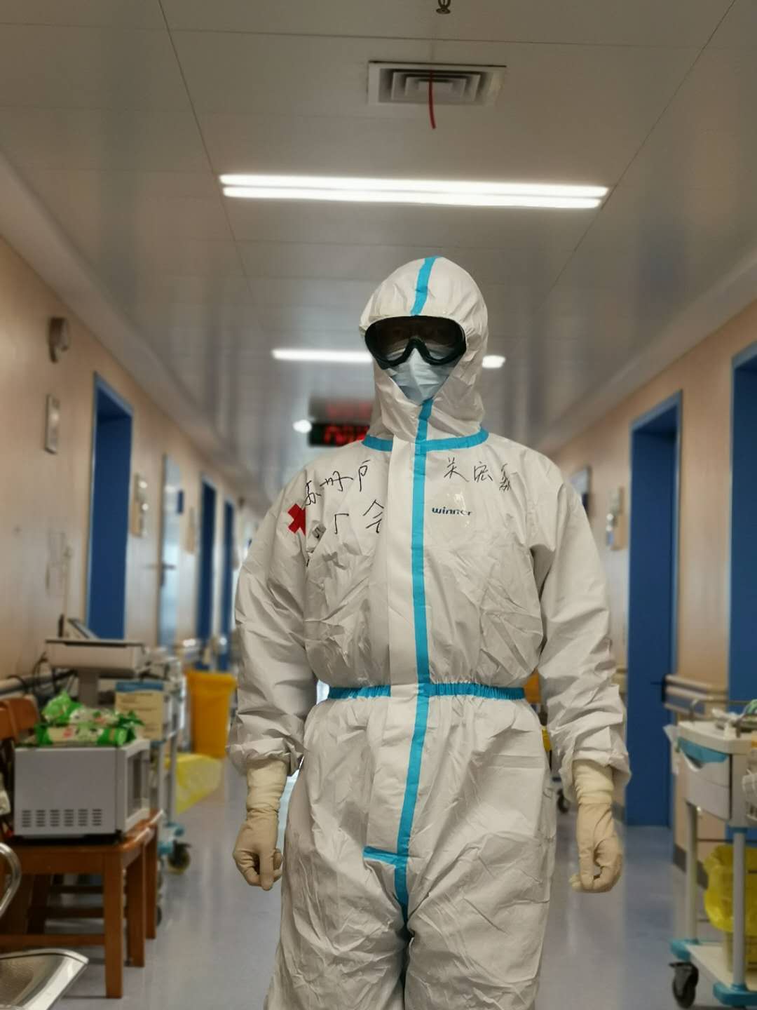 关宏磊在驰援武汉工作日记中写道,“时刻铭记,身为医务工作者应该有的果敢与担当;永生不忘,作为红十字人应该发扬‘人道、博爱、奉献’的红十字精神,坚决打赢这场没有硝烟的战争。”