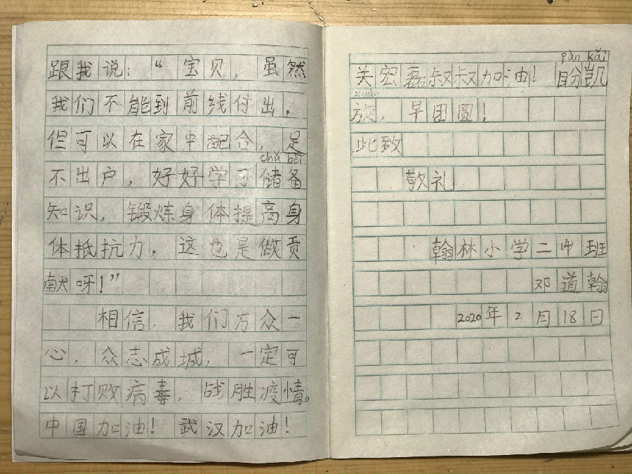 小学生写信给红十字救援队员:盼凯旋,早团圆!