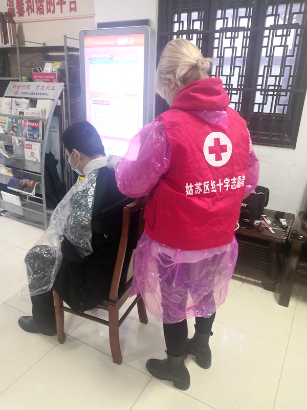 虎丘街道山塘社区的红十字志愿者丁莹是一名首席发型设计师,从2月17日开始,她已经为虎丘街道的交警、医护人员和社区工作人员等约120人义务理发。