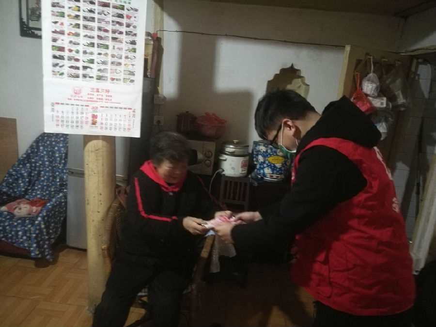 “阿姨,我们是盛泽镇红十字会的,我叫小叶。”