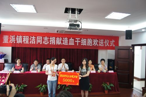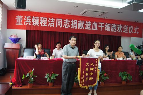 当天,社会各界人士50多人参加了隆重热烈的欢送仪式,市总工会授予程洁“五一”劳动奖章,并送上了五千元慰问金;太平洋人寿保险股份有限公司赠送程洁三十万元人身意外险;江苏永丰建设集团、虞城大酒店、流水琴川义工团等单位和团体也给程洁送来了鲜花和慰问品。程洁说:“我的生命种子可以给一个素不相识的白血病患者再生的希望,我觉得很神奇,也因此而感到幸福。希望有更多的志愿者加入到我们这个队伍中来,为更多的白血病患者带来新生。爱心其实就是一盏灯,一经点燃,就会照亮周围所有的人。”