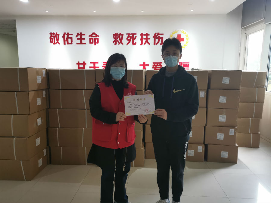 3月27日下午,吴江区实验初级中学的学生陈彧昊在爸爸妈妈的陪同下来到区红十字会,热心捐赠1000双一次性手套,为医务工作者加油鼓劲。
