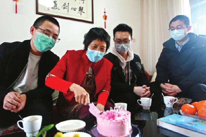 “好婆你看,这是我儿子。出征武汉时他才2个月大,转眼就4个月了!”“我很快就要当爸爸啦,到时来给您送喜蛋!”“我今年就要结婚了,虽然推迟了领证日期,依然很幸福。”听他们讲述生活的美好,吃着香甜的蛋糕,王好婆很欣慰。队员们对王好婆的身体情况也很关心,嘱咐她注意保暖、按时服药,还手把手教她“内外夹弓大立腕”的“七步洗手法”口诀。