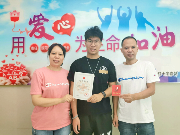 “18岁是人生一个新的起点,把无偿献血作为自己18岁的成人礼,对我以后的人生意义重大。今后我会像父亲一样,积极参与志愿服务,为社会多做贡献!”献完血后,热血少年一脸灿烂,拿着无偿献血证爱不释手。