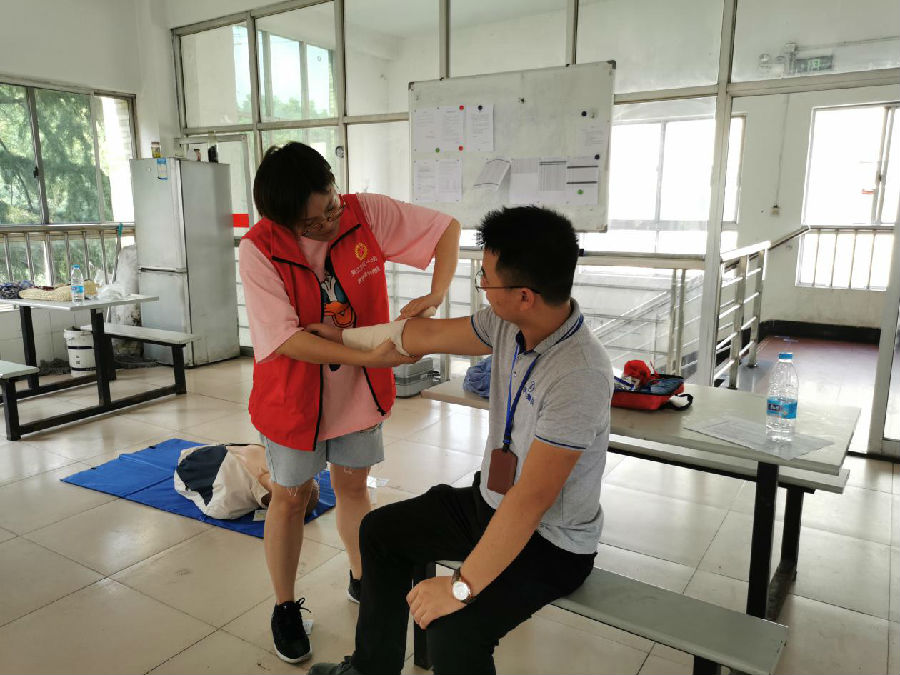 李敏明还根据企业的特性和夏季高温期间,针对职工容易受到的伤害,给职工现场演示了止血包扎和夏季烧烫伤的应急处理方法。