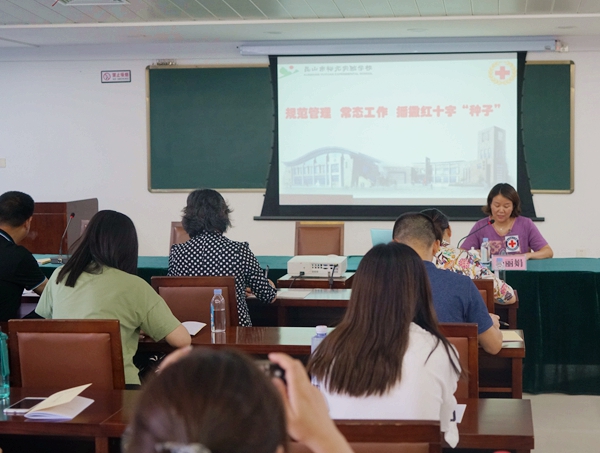 下午的培训会上,昆山市教育局基教科副科长沈志坚、昆山开发区石予小学副校长陈美娜和昆山市裕元实验学校副校长杨丽娟等代表发言,从如何建设“省红十字示范学校”、打造学校红十字品牌以及有效推进学校红十字工作等多方面,介绍了经验做法。