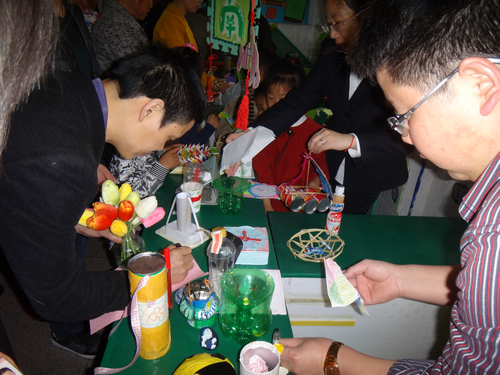 四川雅安芦山7.0级地震牵动着全国人民的心,也震撼着东南小学幼儿园全体师生及家长的心。在幼儿园和家长委员会的组织下,一个“变废为宝,情送雅安”的系列感恩活动开始了。4月26日,一条“变废为宝、情送雅安”信息传送给了每个家长。5月6号早晨,东南小学幼儿园举行了亲子小制作义卖活动。在幼儿园的走廊里,放着家长和幼儿在“五一”期间利用废旧材料制作的亲子小制作,有用纸杯制作的小狮子、废旧筒制作的小凳子、美丽的帽子、精致的飞机……义卖活动有序地进行着。家长们和幼儿挑选一样小制作,自愿付费。家委会代表将钱收齐塞入捐款箱,这个爱心捐款箱“沉甸甸”的,里面装满了大家对雅安的浓浓爱心!