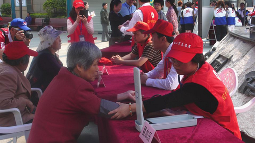 5月4日上午,张家港市红十字会在市区步行街王府广场举行志愿者服务活动,纪念第66个世界“红十字日”。
