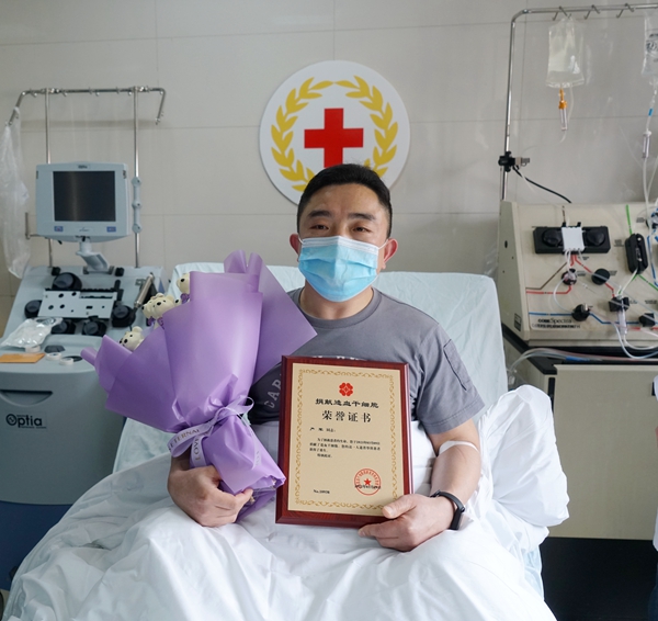 3月9日,经过两个小时的采集,来自昆山市的严军成功捐献造血干细胞,成为苏州市第179例实现捐献的志愿者。