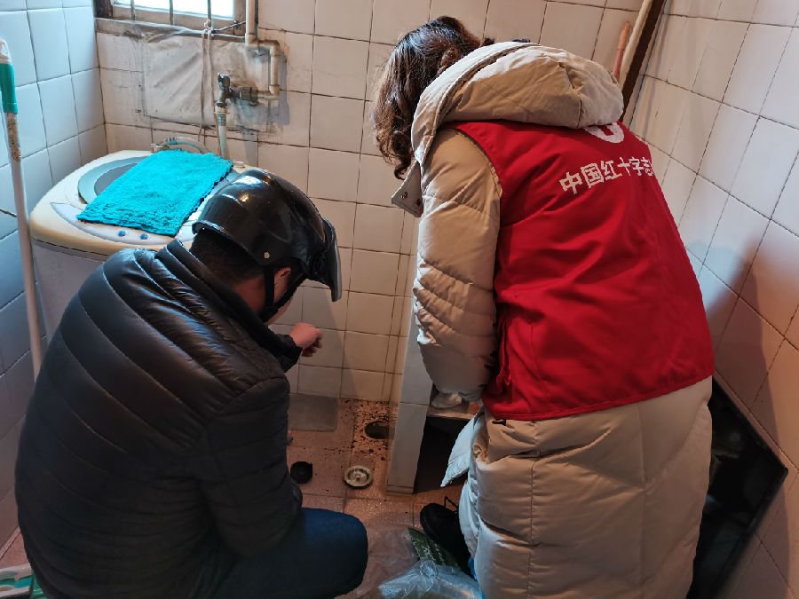 赵阿姨今年70岁,独居又身体不好。得知这一情况后,社区红十字志愿者立即前往现场查看。经检查,污水外溢的原因找到了,红十字志愿者第一时间联系了专业管道人员,经过3个小时的作业,管道终于恢复畅通。