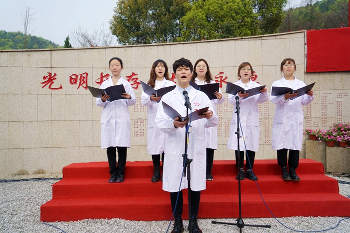 “你们的生命火焰,将永远在此传承延续,你们的精神光芒,将激励我们奋斗向前!”,苏州大学医学生饱含深情的朗诵代表了在场所有人的心声,也拉开了缅怀仪式的帷幕。