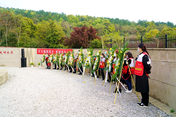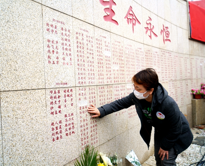 活动最后,市红十字会副会长张献忠上前,为各市、区红十字会捐献的花篮整理绶带。所有人员肃立在铭刻着捐献者名字的纪念墙前,面向纪念墙三鞠躬,并献花怀念。
