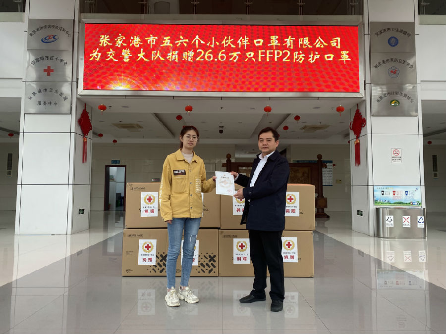为了表达对奋战在城市交通管理一线交警的敬意和关爱,4月27日上午,张家港市五六个小伙伴口罩有限公司向张家港市红十字会定向捐赠26.6万只FFP2口罩,用于支持全市交通干警户外执勤工作。