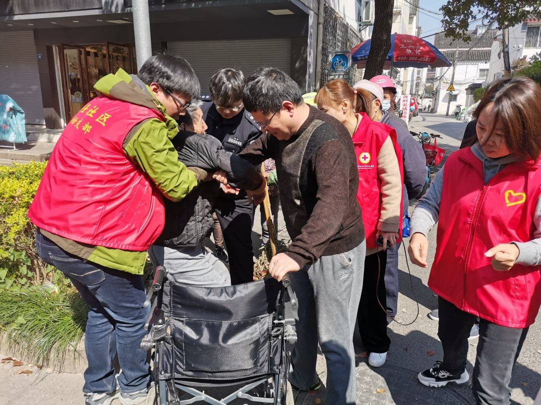 八旬老人意外跌倒,红十字志愿者前来帮忙