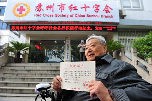 市红十字会捐款现场涌现出许多感人场景。顾秉钧是上海市公安局静安分局的退休干部,他坐着轮椅、拄着拐杖送来了2000元捐款,市红十字会的捐赠账目上显示:他已经为汶川地震捐了1000元,为玉树地震捐了1500元,为舟曲泥石流灾害捐了2000元。和他一样多次捐款的华友德老先生今天也捐来了1500元,工作人员一见他就喊出了他的名字。陈兴妹是一位癌症患者,刚刚做完手术,正在接受化疗的她不顾身体虚弱,来到红会捐款200元,她说,本来还想为灾区献血的,可惜身体状况不允许,只能捐点钱表示心意。
