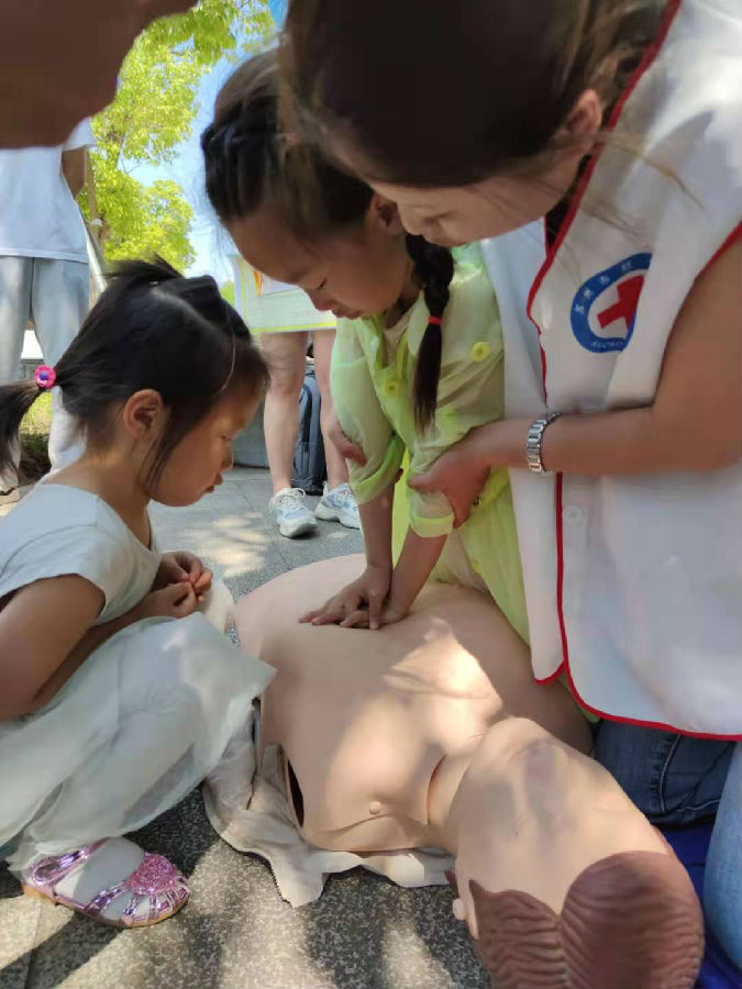 现场还有红十字志愿者演示心肺复苏等急救技能,吸引了不少市民驻足围观。市民黄先生主动上前学习,在红十字志愿者手把手的指导下,学会了心肺复苏的基本操作。“以前在电视上看到过因为家里人不会急救,导致病人错过最佳抢救时间,这次体验下来觉得真的非常有必要,家里有老人和小孩的更应该学会急救!”