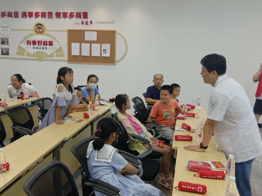为了确保辖区内的孩子度过一个“平安、文明、健康、愉快”的假期,7月21日下午,通安镇红十字会在华通花园第六社区居委会开展了应急救护培训暨科学防疫知识普及活动,教育孩子进行自我保护、远离危险,教育家长规避安全风险,做好儿童防护。