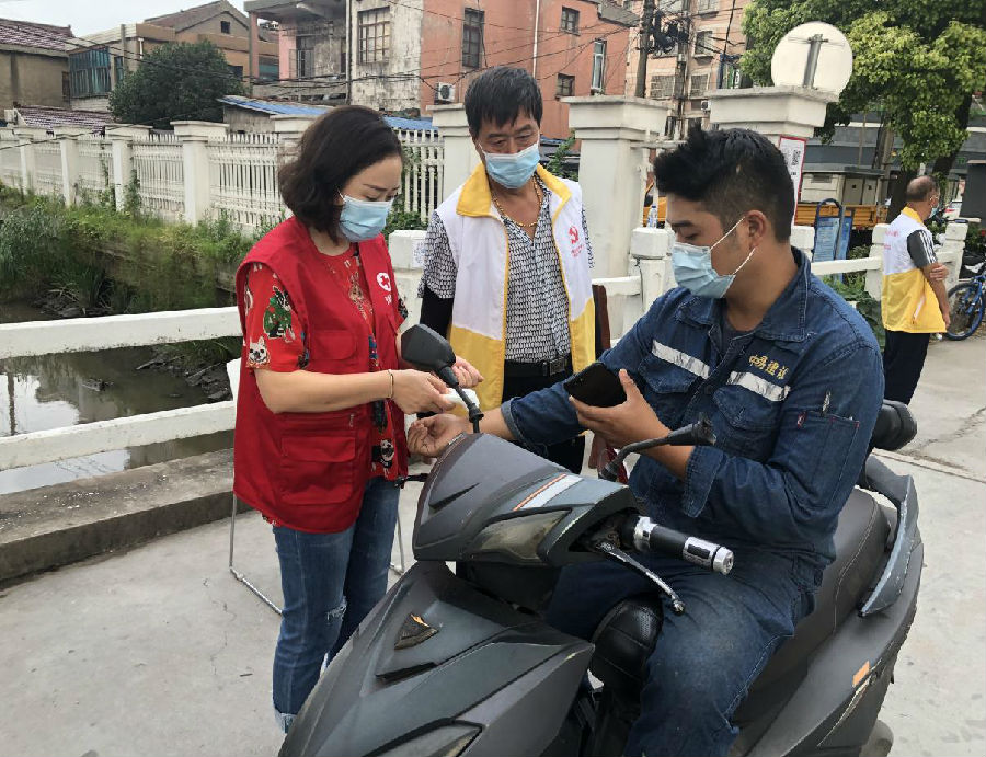 在烈日下,在大雨中,在长夜里,他们坚守战“疫”防线。8月13日,张家港市镇北社区在沙钢小区南门卫、新华二组路口处设置门岗,社区红十字志愿者分早、中、晚三班在卡口处维持秩序,提醒居民戴口罩,耐心指导居民进行体温检测,确认健康码绿码。一遍遍提醒、一次次查验,鲜艳的“红马甲”成为群众身边的一抹亮色。