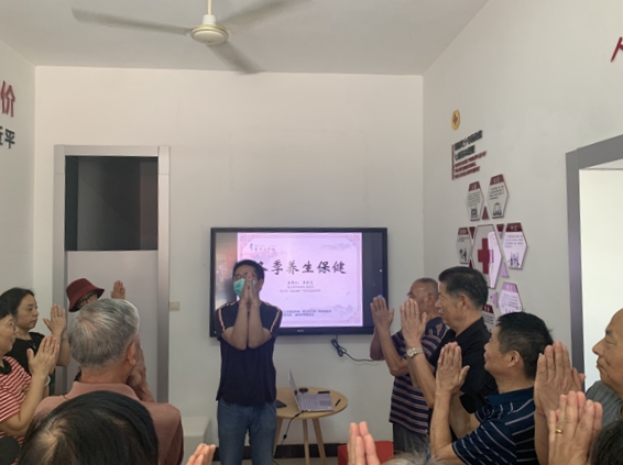 在荣亭村博爱家园,还有一场精彩的健康养生讲座。本次讲座由昆山市中医医院的王秋文营养师为大家讲解冬季养生保健知识,提高老年人的健康意识。现场的村民们都听得非常认真,跟着讲师学做各种养生动作,气氛热烈。